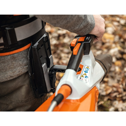 O soprador BGA 100 pesa apenas 2,5 kg (sem a bateria). O tubo de sopro ajustável pode ser rapidamente configurado em três comprimentos diferentes para se adequar à aplicação atual, o que permite remover folhas e detritos de forma eficiente, mesmo em áreas extensas. O soprador BGA 100 utiliza baterias do sistema STIHL AP. Para maior conforto durante o trabalho, é possível combinar este soprador com o suporte opcional STIHL AP com cabo de conexão, um sistema de transporte STIHL e um suporte de apoio STIHL. O suporte de apoio pode ser enganchado diretamente no dispositivo. Para períodos de trabalho mais longos, recomendamos o uso de uma bateria de mochila, como a AR 3000 L.