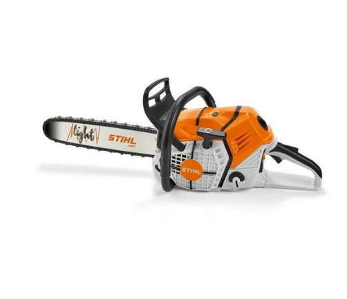 A motosserra de brinquedo STIHL é alimentada a pilhas e tem a aparência da inovadora STIHL MS 500i. Reproduz de forma divertida muitas das características da motosserra "grande", desde a corrente móvel intercambiável até ao novo design da barra e o indicador de operação LED.