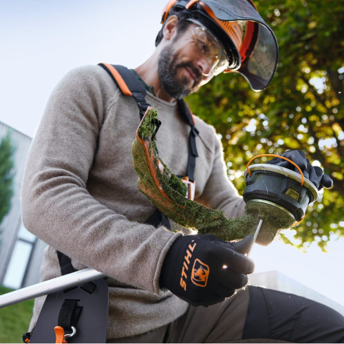 O potente motor EC permite ajustar a velocidade diretamente no punho de comando, através de um controlo variável com 2 níveis. No modo ECO (nível 1), pode trabalhar a velocidades mais baixas, o que reduz o consumo de energia e prolonga a autonomia da bateria em aplicações mais leves. Para cortar vegetação densa ou relva alta, basta mudar para o nível 2 com o botão deslizante. A velocidade adapta-se de forma contínua à ferramenta de corte utilizada.