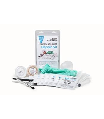 Cada Kit de reparo Fiberglass Boat contém oito pacotes de WEST SYSTEM 105 Resin e 205 endurecedor, tecido de fibra de vidro , enchimento adesiva , carenagem de enchimento , escovas de cola , potes de mistura , uma vara de mistura, uma seringa de aplicação , três pares de luvas de protecção e instruções ilustradas para o preenchimento uma variedade de reparos de fibra de vidro comuns.